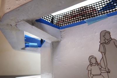 これまでのビワコオオナマズ・コアユ水槽は、どちらも大きな円柱型をしていました。円柱水槽は、見た目が幻想的です。しかし今回のような事故が起きると、大規模な被害をもたらします。また、同様の水槽にする場合、同じ大きさ・形の水槽は搬入できないことや円柱は中に入っている魚の姿が少しいびつに見えてしまう、複数匹飼うとケンカするという問題がありました。そこで、新しい水槽では、広い窓部分から伝説のナマズ岩にたたずむ「琵琶湖の主(ヌシ)」を見る形にしました。また通路の頭上から水槽をのぞき、ナマズたちを腹部側から見ることができる構造にしました。