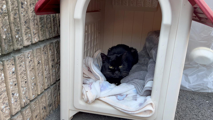 寒いと思いボランティアさんが置いた犬ハウスを気にいる黒猫くーちゃん