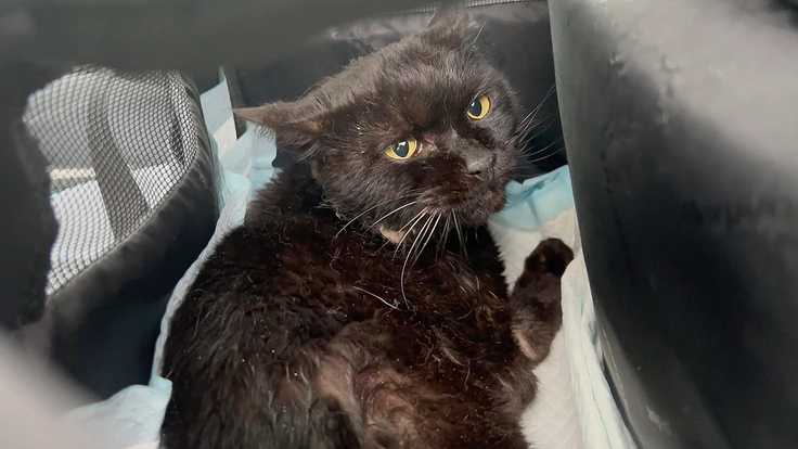 病院に行く前に不安そうな表情を見せる黒猫くーちゃん