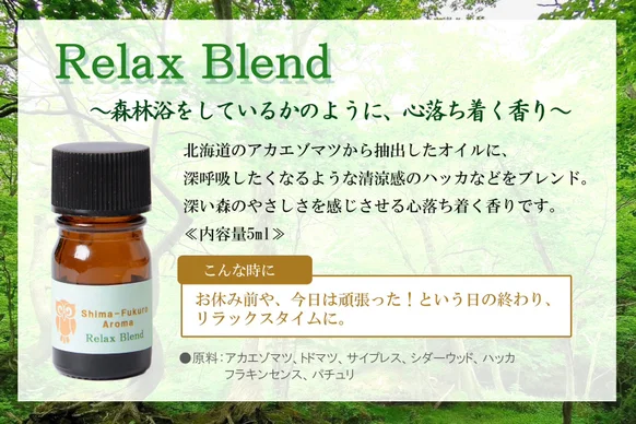 Relax Blend aroma 【北海道の森林の香りを再現したアロマ】5m