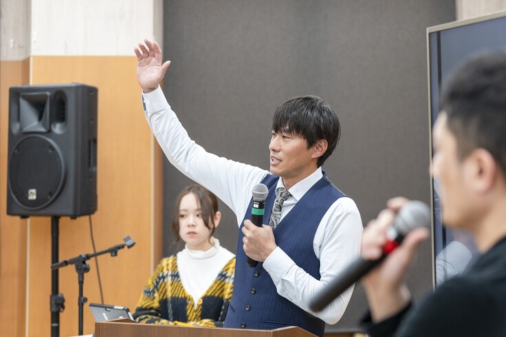 参加者の学生「川原さんは、ファジアーノの元キャプテンとしてリーダーシップで難しかったことはありますか?」