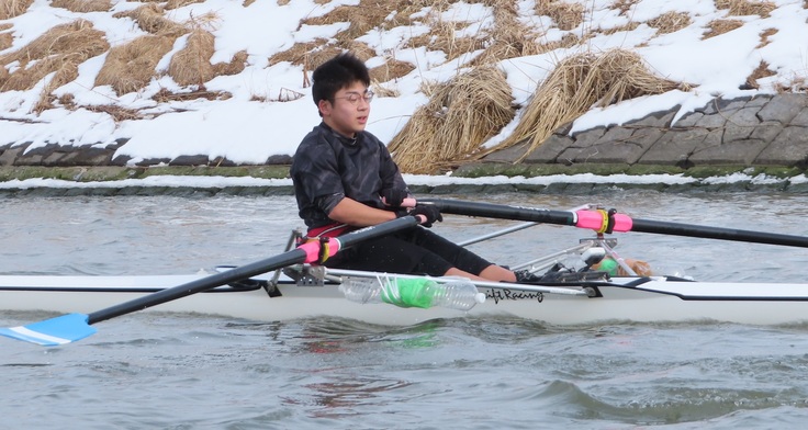 道内でも結氷しない釧路川では3月ですが、艇をうかべてトレーニングすることも。