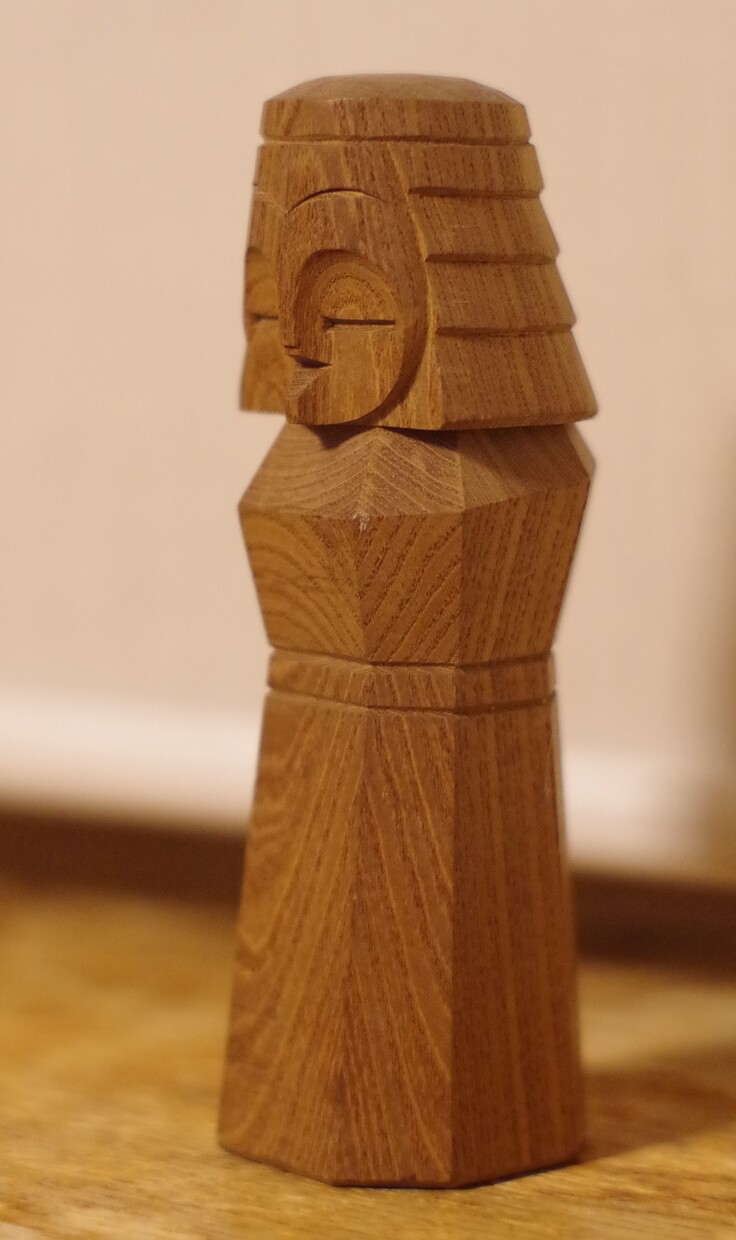 木の素材感と単純でありながら気品のある立ち姿がすばらしく、気がつけば手もとに三体ありました。