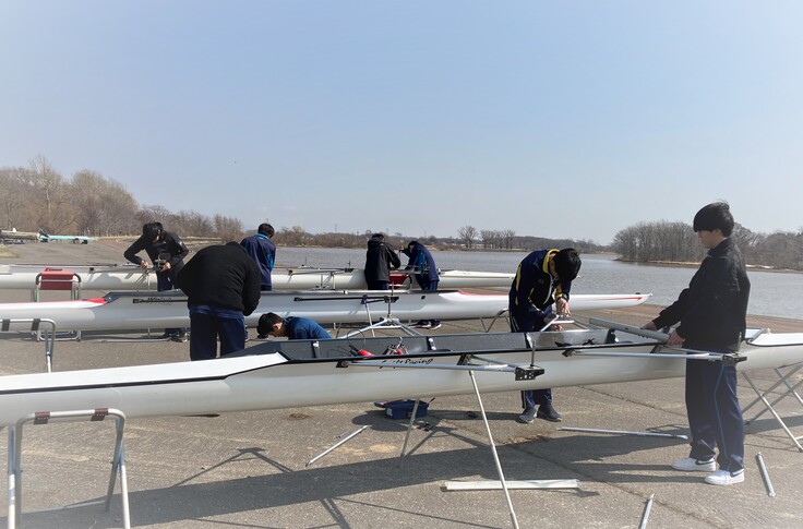 昨日は、この暖かさにさそわれて、札幌茨戸川では石狩翔陽高校ボート部員がいよいよリギングを始めました。