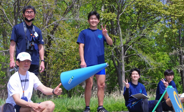 上の写真で、フィニッシュ計測を担当しているのは釧路工業高校の吉尾洋先生(左上)と網走桂陽高校の小山剛志先生(左下)です。