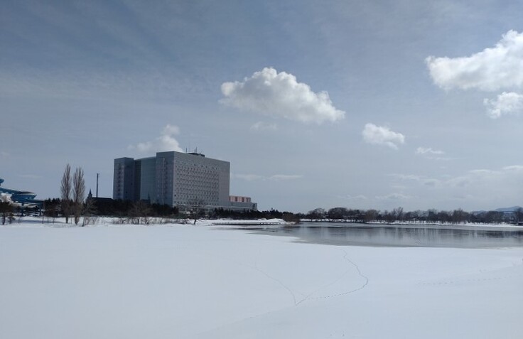 例年にない大雪に見舞われた北海道、それでも北海道石狩市の茨戸川ボートコースでは雪解けがすすんでいます。