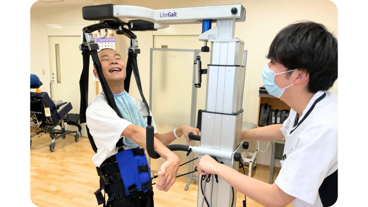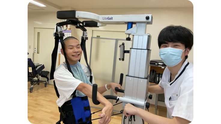その想いは前々から私たちに寄せられる患者さんご本人やご家族からの希望として、これまでもベルトで支えてくれる装置(体重免荷装置)の導入は検討していました。中でも、世界でも使用されるLiteGaitには注目しており、最近になり日本の会社での取り扱いが開始されることを知りました。
