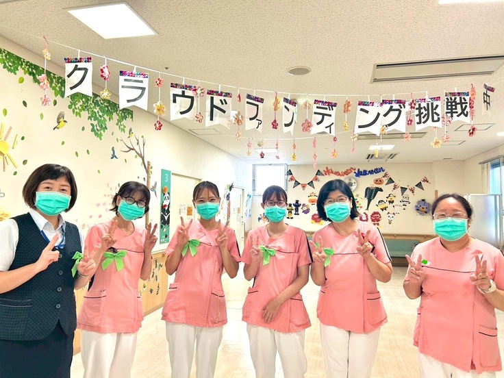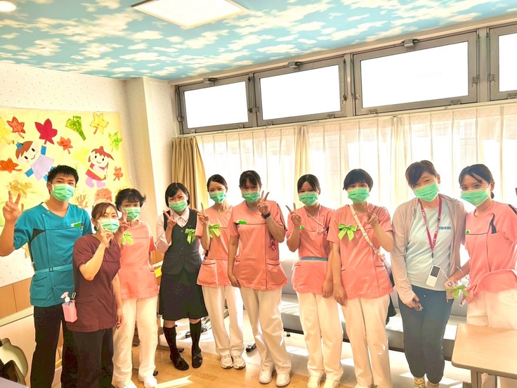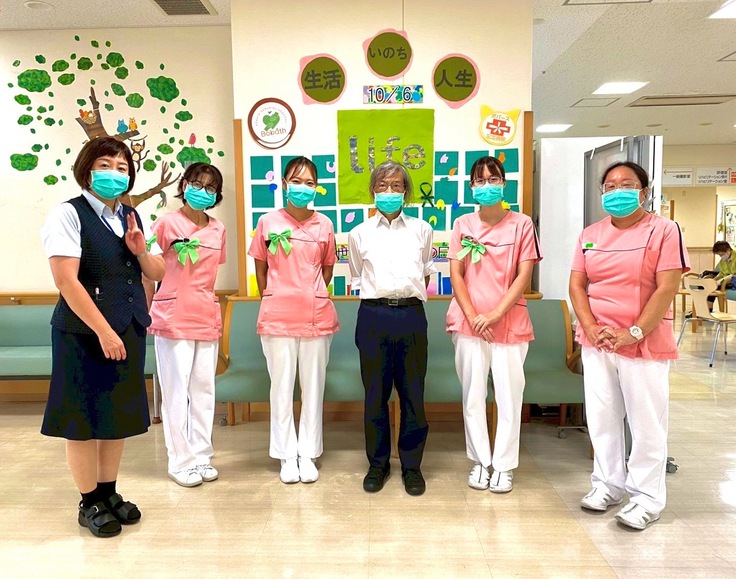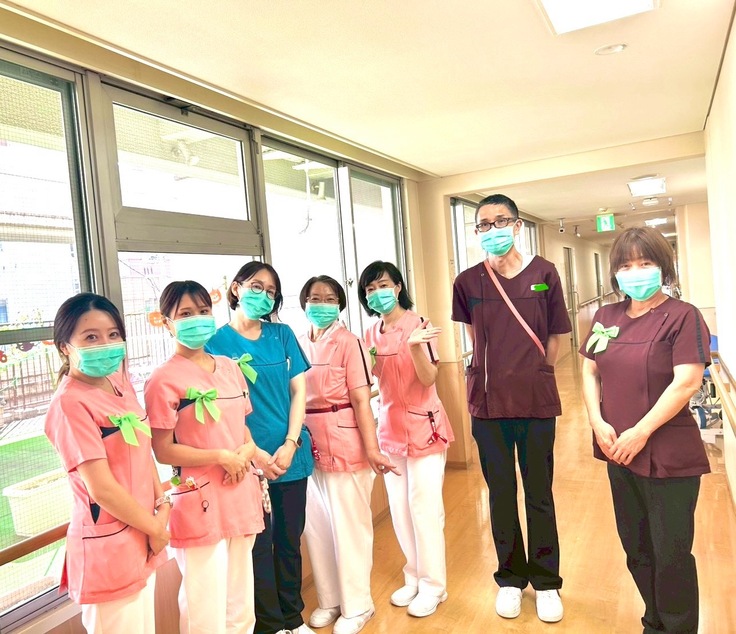 まず院内スタッフで、シンボルカラーであるグリーンのマスクを着用して勤務していました!(手配くださった資材課の皆さま、ありがとうございます)