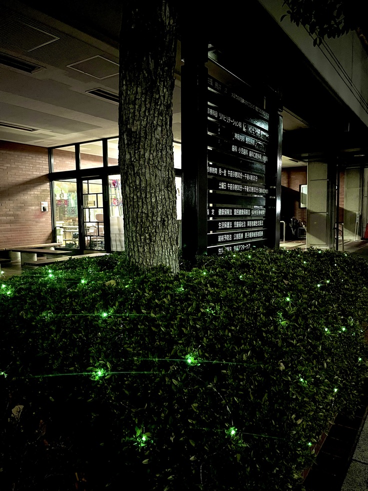 また、病院前ではシンボルカラーでのミニライトアップに初めて取り組んでみました!