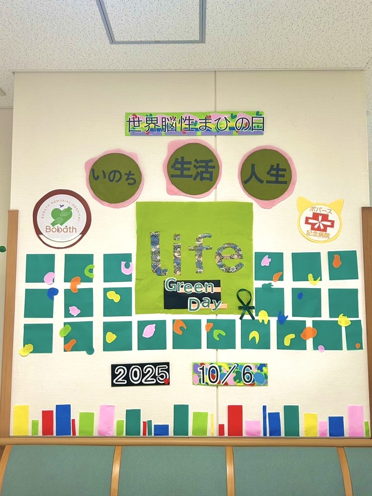 近年日本国内全域でも、脳性まひのシンボルカラーであるグリーンを元にした各地の施設のライトアップなどが、この10月6日『世界脳性まひの日』に実施されているのですが、遅ればせながら…恥ずかしながら、当院でもこの日に啓発活動を初めて実施いたしました!