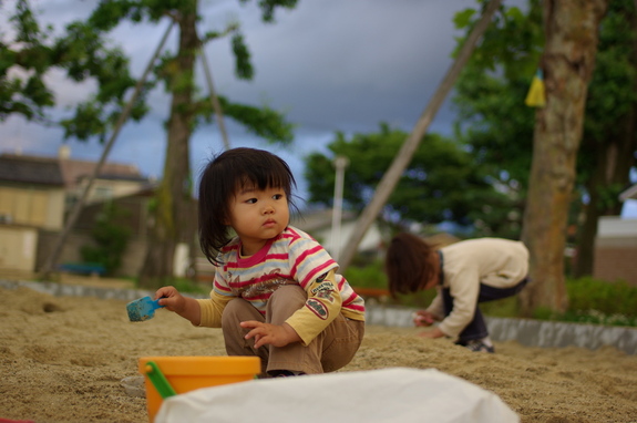 砂場で遊んでいるこの子。時折、ちゃんといるかなあ、見てくれてるかなあ・・・、と一緒に来ているおとなの方を振り返って。ふっと、不安になるんですよね。