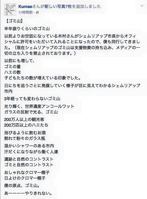 ご協力いただいている現地支援団体「Kumae」さんのFacebookページにはこんなことが書かれていました。