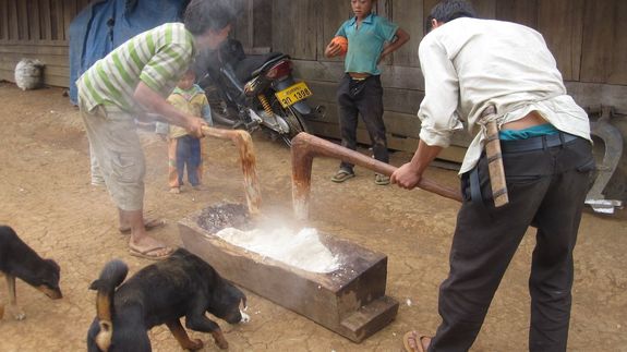 ラオスの民族の中でも、モン族だけがするという餅つき。