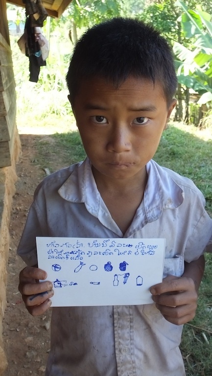 メッセージは、ラオ語と不発弾の絵も一緒に、しっかりと書いてくれました。