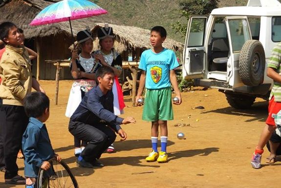 鉄球を投げて、目標の位置にある別の鉄球の一番近くに寄せた人が勝ちというゲーム。
