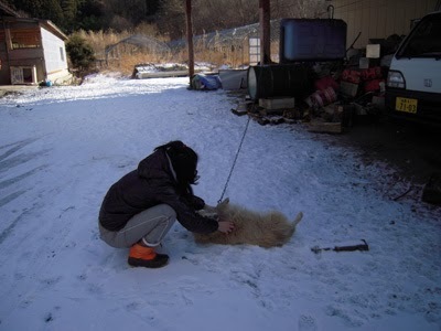 その後、個人の力だけでは限界を感じ、2011年10月30日を結成日として、『ちーむぼんぼん』を立ち上げ、ブログなどを通じてフードなどの支援を募り、いただいたたくさんの物資を積み込んだレンタカーで、村の住宅地図を見ながら、一軒一軒廻り始めました。置き手紙を貼り、飼い主さんから必要な支援がある時は連絡を取れるようにもしていました。