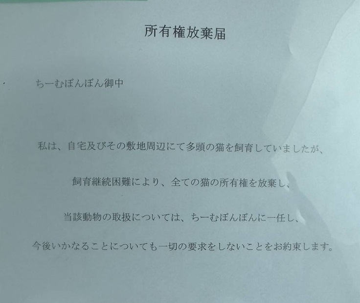 夕方ソーシャルワーカーさんより連絡があり、所有権放棄書に同意とサインをしてもらえました!との事!!