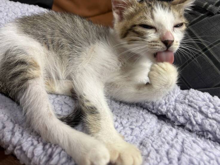 1ヶ月半はなっているだろうと思うガリガリの子猫でした。