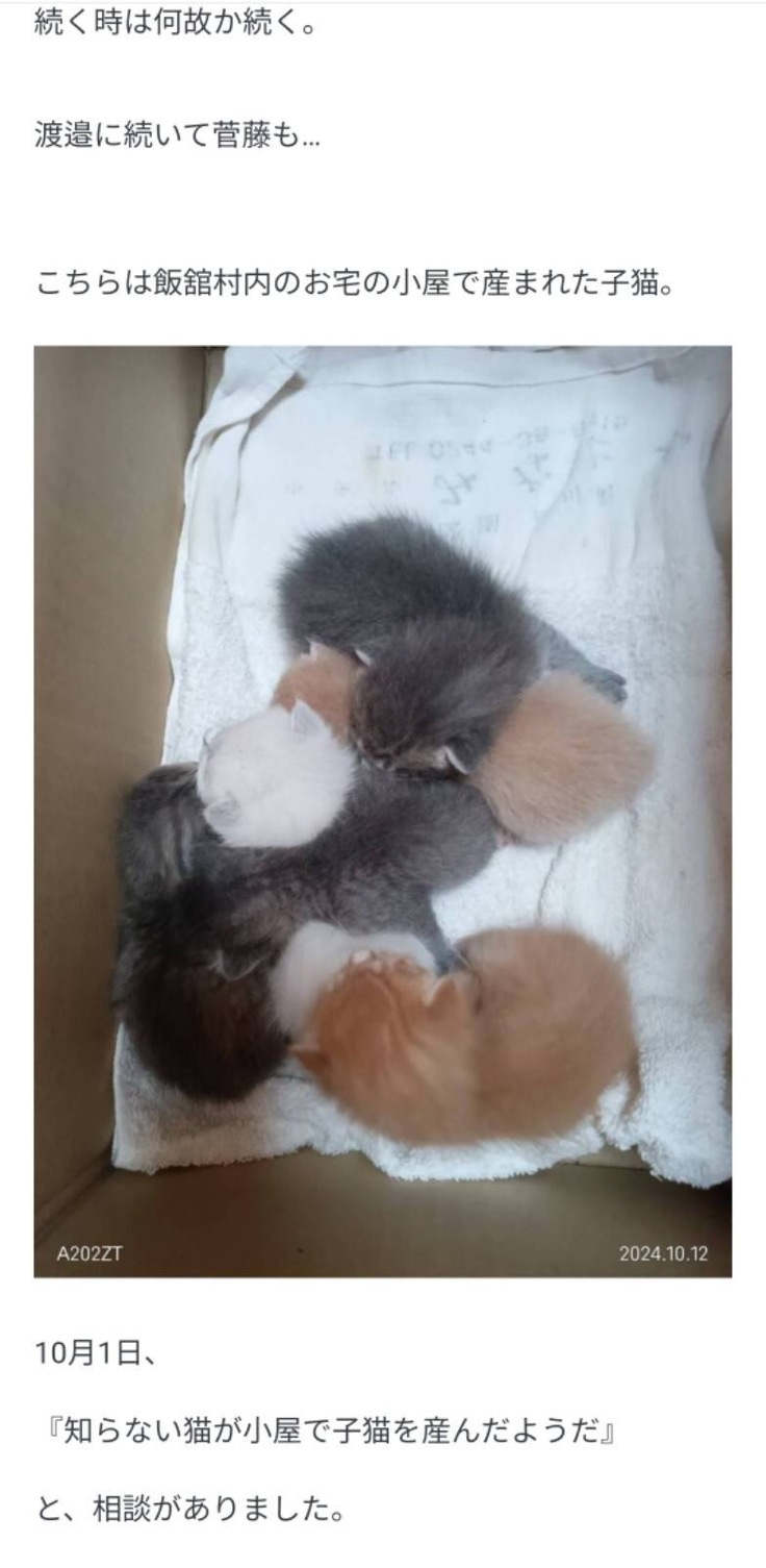 10月13日の活動報告に書いた飯舘村で保護したオチビさん達。