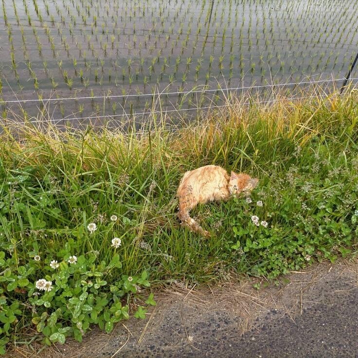 あぜ君を見つけた場所は一匹が亡くなっていた場所の近くでした。