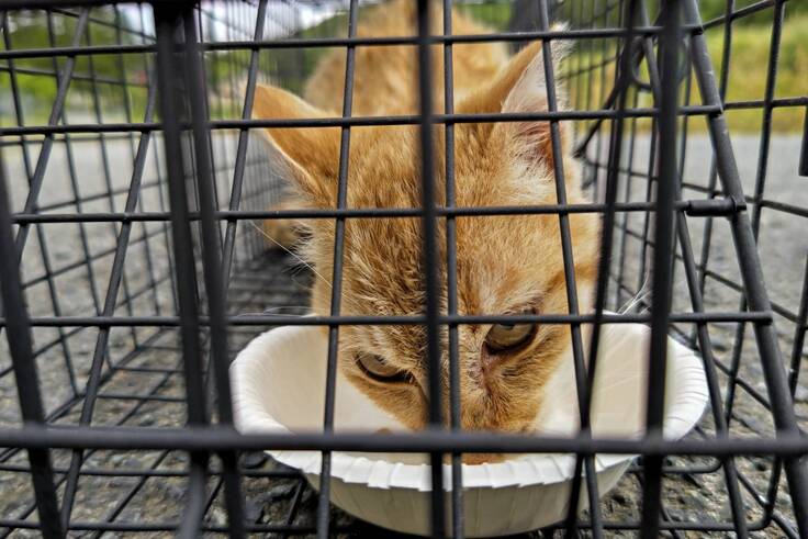 保護時捕獲器に移動してちゅ~るをもらったあぜ君