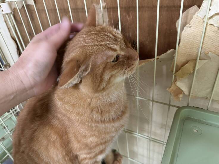 雨に濡れている痩せた猫を給餌ボラの小山さんが発見した。