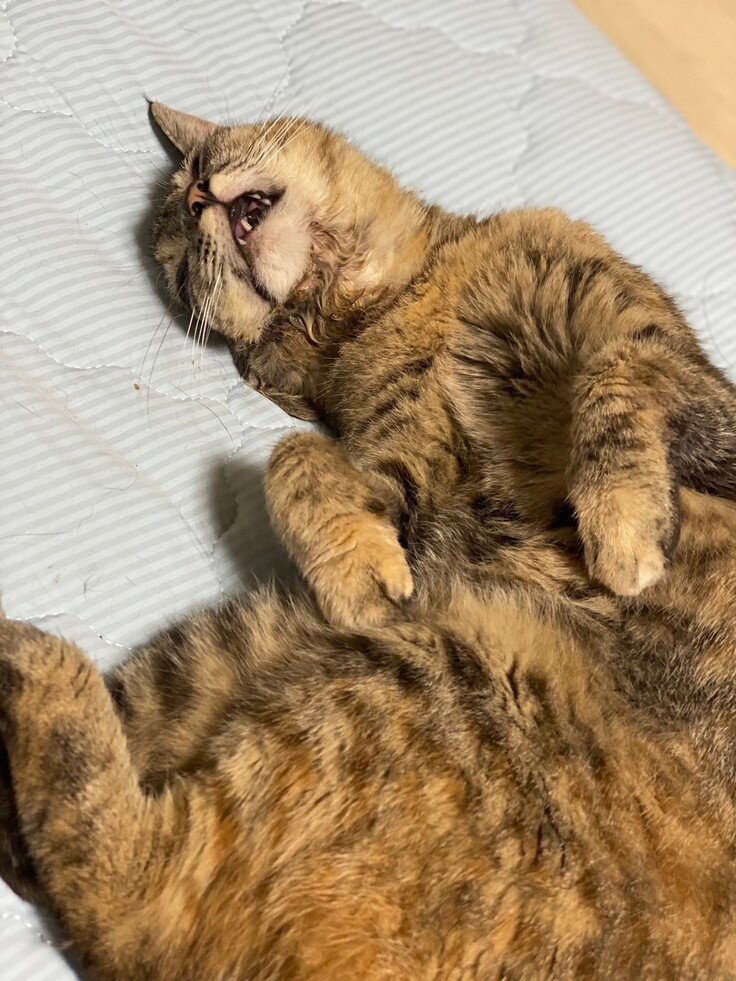 その時にゴロゴロペタペタしてきた飛び抜けて人懐こい子がキョロちゃん。