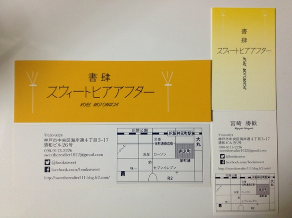 先日6日に、「書肆スウィートヒアアフター」の名刺とショップカードが完成しました。ご報告が遅れてすみません。