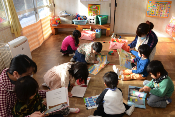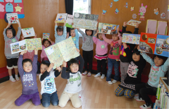 (岩手県大槌町の保育園に絵本を届けたところ、さっそく読書タイムが始まりました。みんな夢中です)