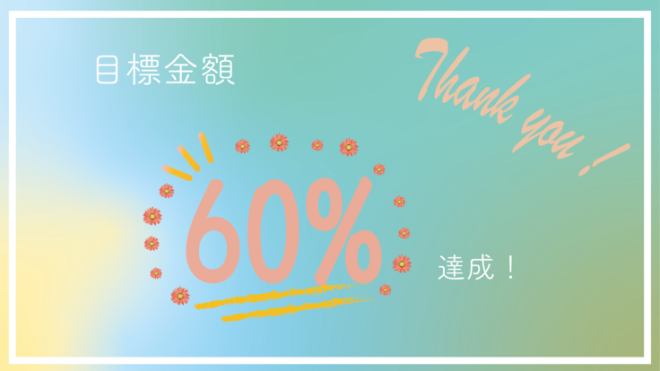 みなさまのご支援のおかげで目標金額の60%を達成できました。ありがとうございます!8月中の65%を目指して頑張ります。
