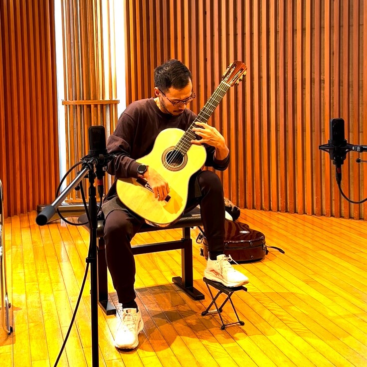 録音曲はポンセのエストレリータ。大萩さん所有のBouchet (1962) No. 85、プロジェクトでお借りしているBouchet (1969) No. 123、Sekiba (2024) No. 4の3本で録音しました。科学者の習性でOK takeを3回ずつ録り、計9つのOK takeとなりました。1曲でこんなにOK takeを録ったのは初めて!と、大萩さんもびっくりの録音となりました。大萩さんが弾き始めるとき、毎回のゾーンへの入り方がすごくて、ほとんどミスらしいミスなく9回のtakeをすんなり終えられたのはまたびっくりでした。よく聴く有名曲ですから。支援者のみなさんにお配りするCDにポンセは絶対に入れたいなと思っていました。大萩さんからこの曲を提案されたときには運命を感じました(笑)。同じ曲をブーシェだけで揃えたアルバムと、私のブーシェ・コピーで揃えたアルバムのCD2枚セットになる予定です。