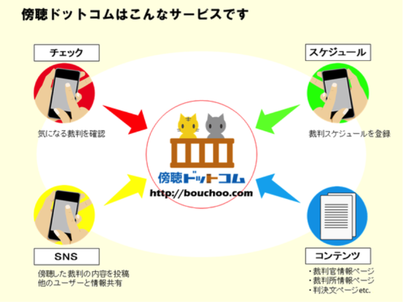 裁判スケジュールのシェアと裁判内容に関する投稿を掲載するサイト、“傍聴ドットコム”を制作したい!