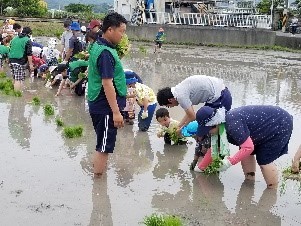 毎年6月ごろに実施します。はじめて田植えをする子どもたちも多いようで、親子で泥の感触を楽しむ様子が見られます。田植えの前にはどろんこ遊びも行います。