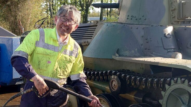 お披露目会後に「戦車を洗車する」自分です!