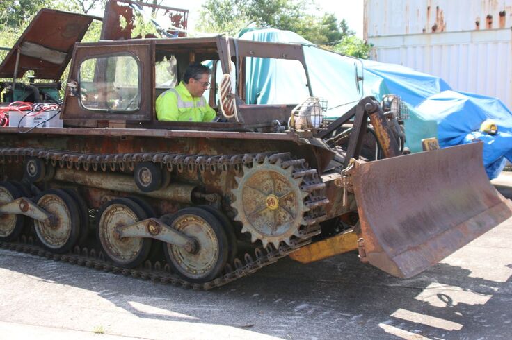 この九五式軽戦車改造ブルドーザーの修復も行う計画です。そのための修復費用をクラウドファンディングにて募ると同時に、くろがね四起修復計画の時と同様に修復前の現状を多くのみなさまに見学して頂く機会も作りたいと考えております。