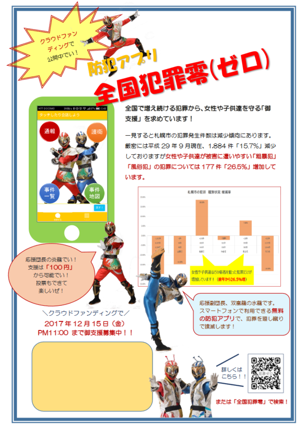 なお「ソーランドラゴン」だけではなく、ご当地ヒーローの防犯botはヒーローから出演交渉が得られれば随時リターンへ追加してゆく予定です。