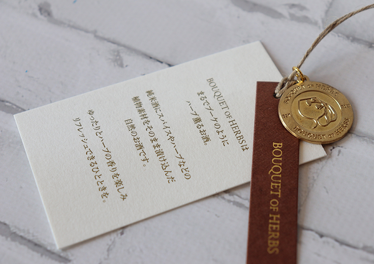 『BOUQUET OF HERBS』には、おすすめの飲み方と商品名が書かれたタグと一緒に、見た目も楽しめるための工夫として小さなチャームがついています。