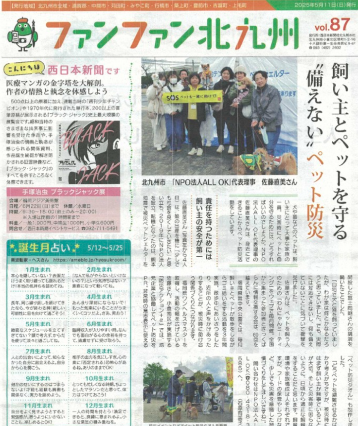 福岡県北九州市を拠点に「ペット防災」「ワンヘルス」の啓発を中心に2020年より活動を行っております。正会員10名、賛助会員20名ほどのボランティア団体です。HP