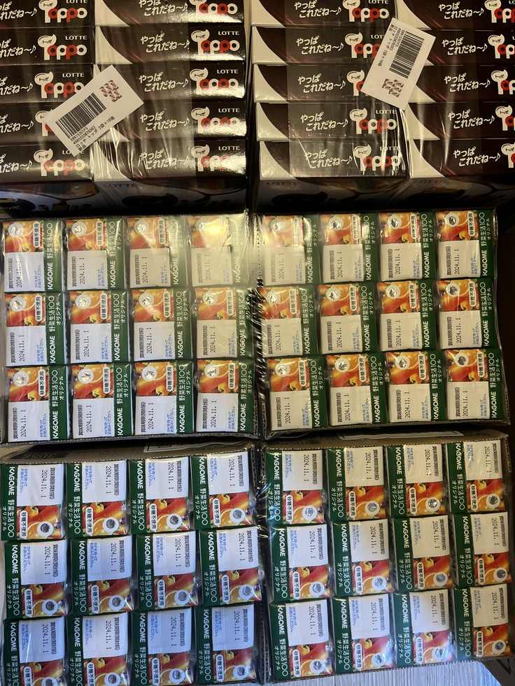 お菓子、パスタ、強力粉、野菜ジュース、飲料品などの詰め合わせをいただきました。