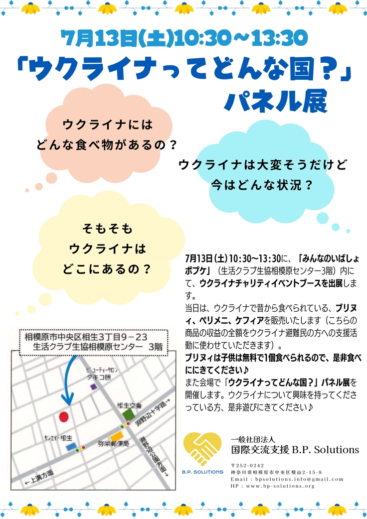 7月13日(土)10:30~13:30に、みんなのいばしょポプケ(生活クラブ生協相模原センター3階)内にて、チャリティイベントを出展します。