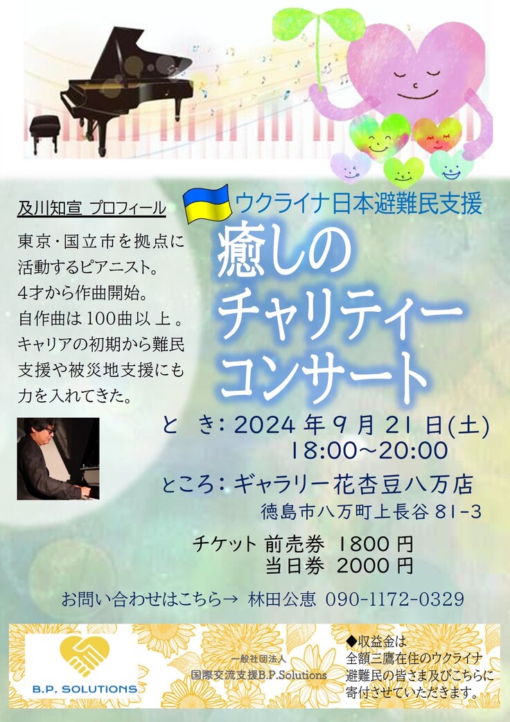 【イベントご案内】9/21(土)徳島市「ウクライナ日本避難民支援、癒しのチャリティーコンサート」開催