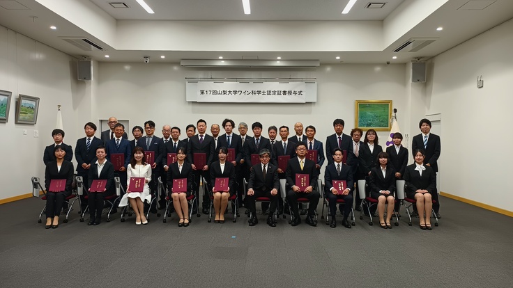 2025年6月26日、山梨大学は、「ワイン科学士」および「準ワイン科学士」の認定式を開催いたしました。