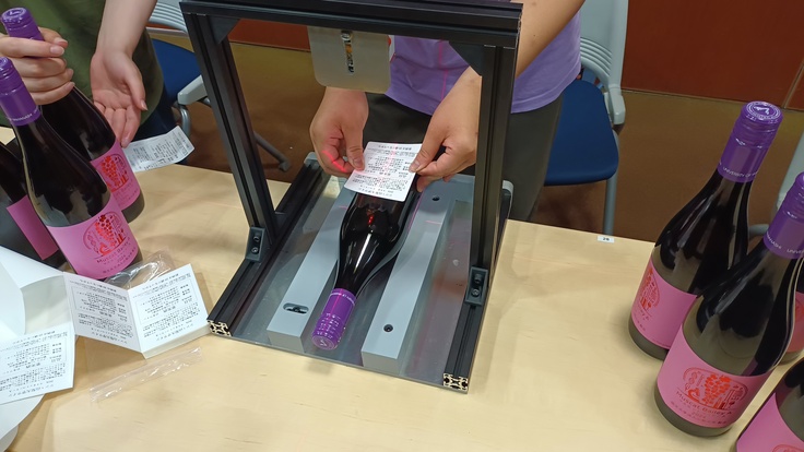 2025年夏のリリースを予定している「シン・山梨大学ワイン2024」について、ラベル貼り作業を行いました。