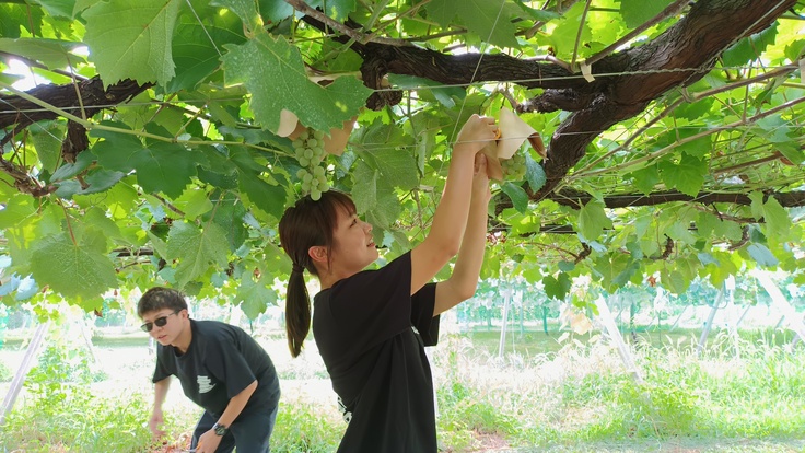収穫作業には学生10名が参加し、ひと房ひと房を丁寧に収穫。