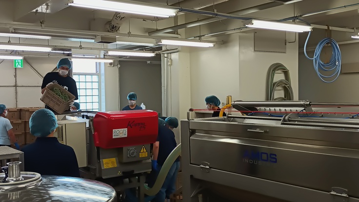 続いて、仕込み工程には7名の学生が挑み、仕込みの第一歩を無事に終えることができました。