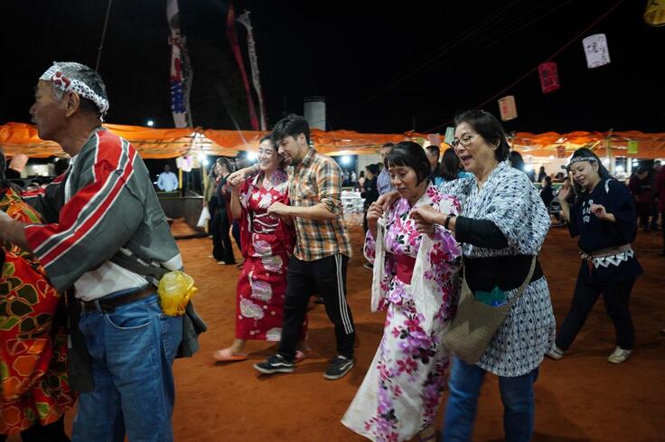 第一アリアンサ村では、老若男女問わず村の人たちが一堂に会す運動会やうどん会、カラオケ大会、マレットゴルフ大会など多くの日本文化にまつわる行事が今なお行われています。それらの中で村人全員が一年間で一番心待ちにしている行事が「盆踊り」です。