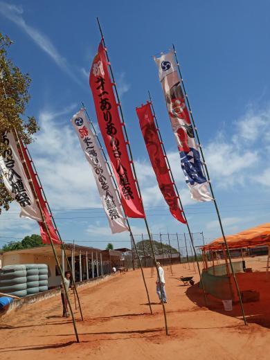 のぼりは盆踊りの会場である第一アリアンサ村のグラウンドに続く道に掲揚し、来場者の方々を迎える予定です。第一アリアンサ村には70の日系の家庭があります。それら家庭の苗字を取り、「○○家」と記載したのぼりを制作予定です。加えて、開拓に尽力した方々の名前を表したのぼりの制作も行います。その数はおよそ70個を予定しています。第一アリアンサ村の伝統を重んじ、生地とインクのみを購入し、村の人たちの手作りでのぼりを制作する予定です。