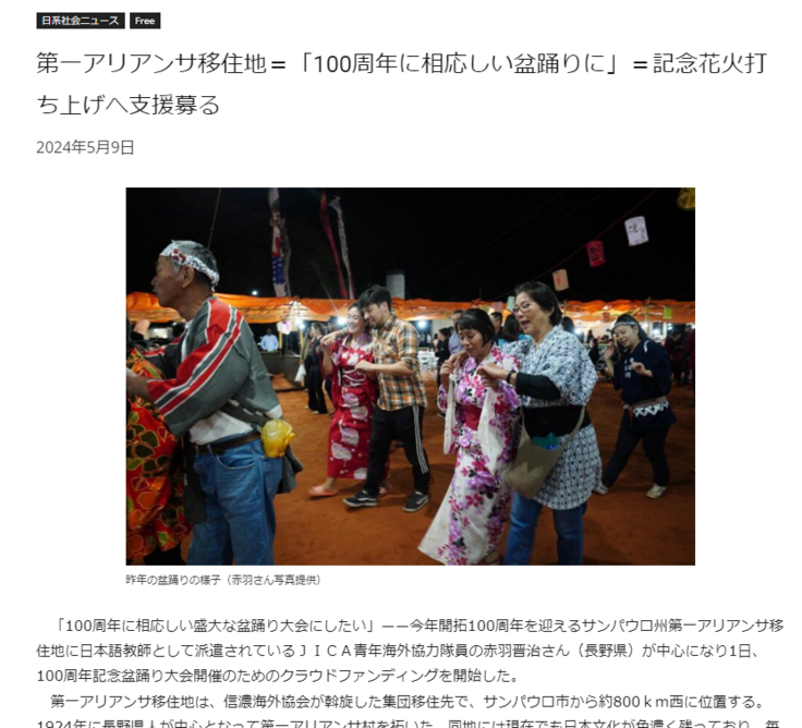 開拓100周年ブラジル第一アリアンサ村盆踊り 村人の想い実現のため