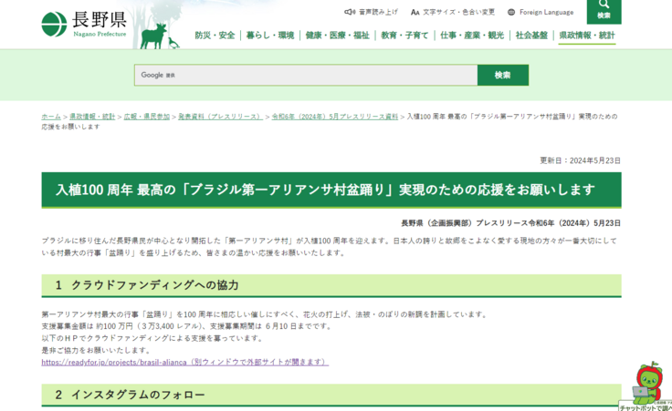 この度、長野県庁様のホームページで、本クラウドファンディングを紹介してくださいました。