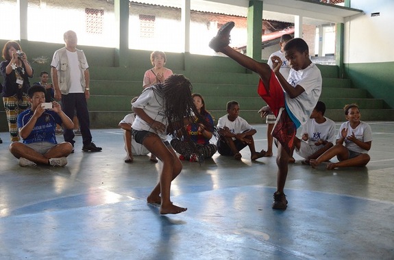 カポエイラとは、様々な事を禁止されていたブラジルの奴隷達が、音楽にあわせダンスにカモフラージュしながら練習してた格闘技、護身術が元になってできたと言われている伝統芸でありスポーツ。